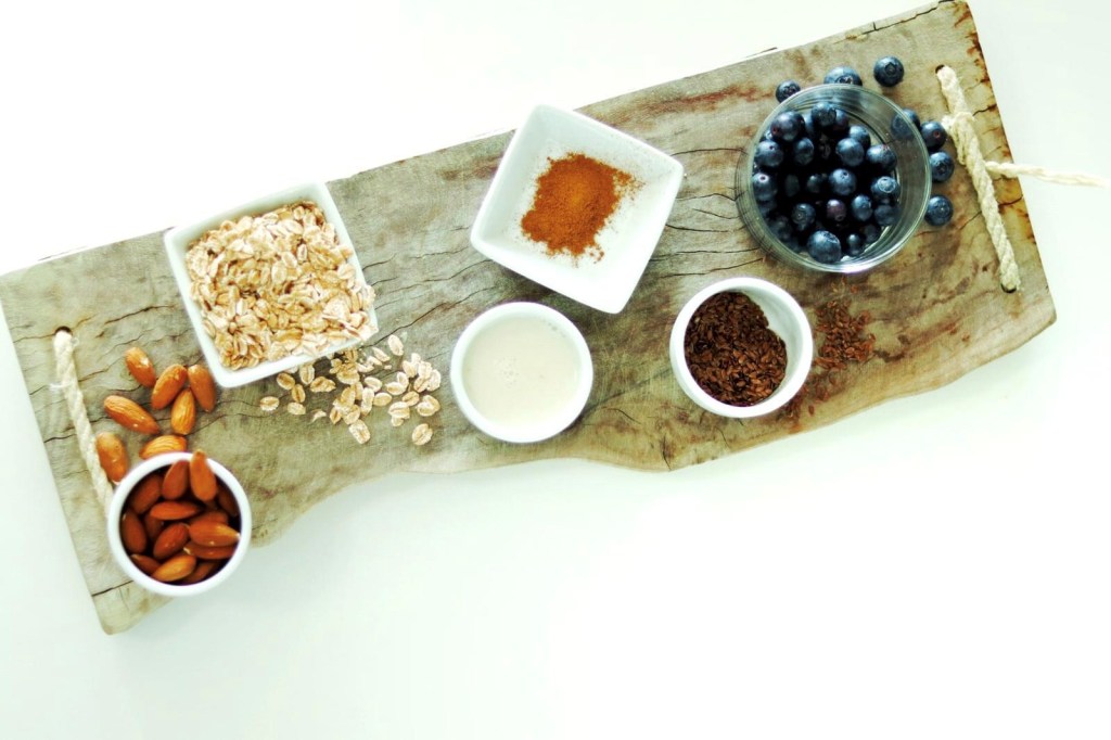 Overnight oats: blauwe bessen met amandelen en speltvlokken (ontbijt of lunch)